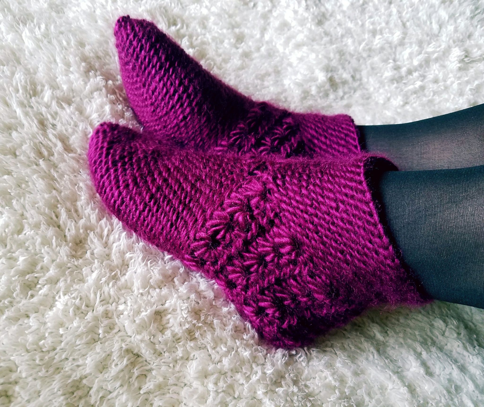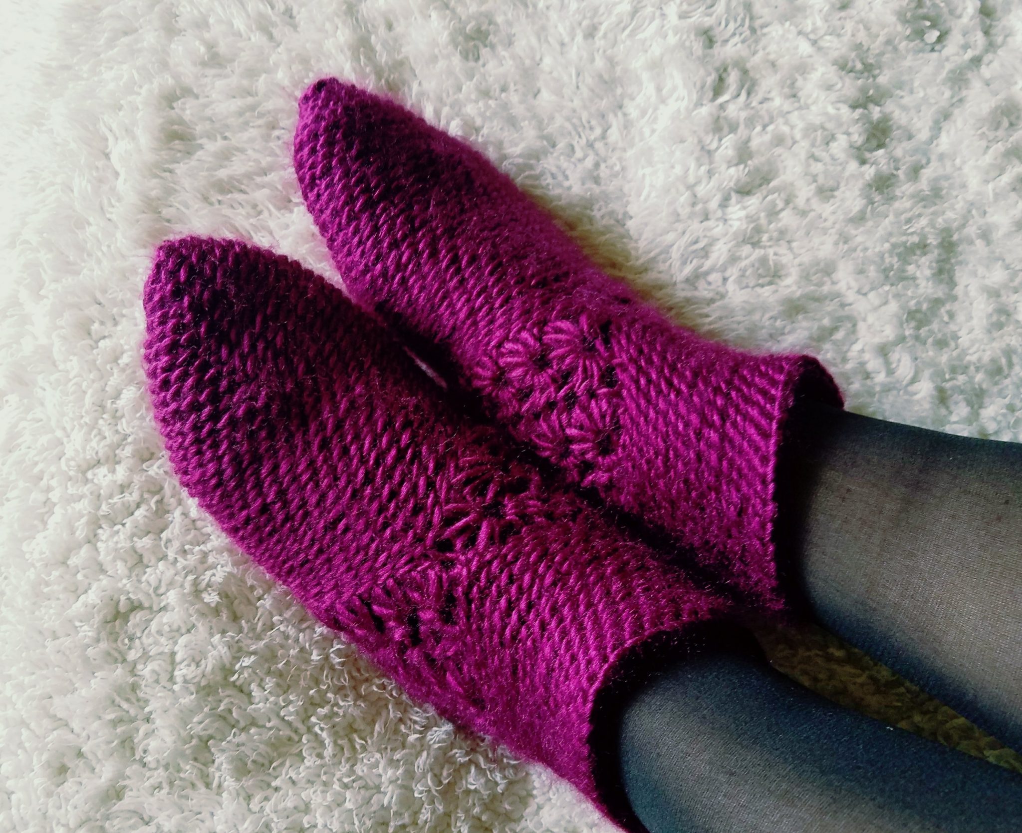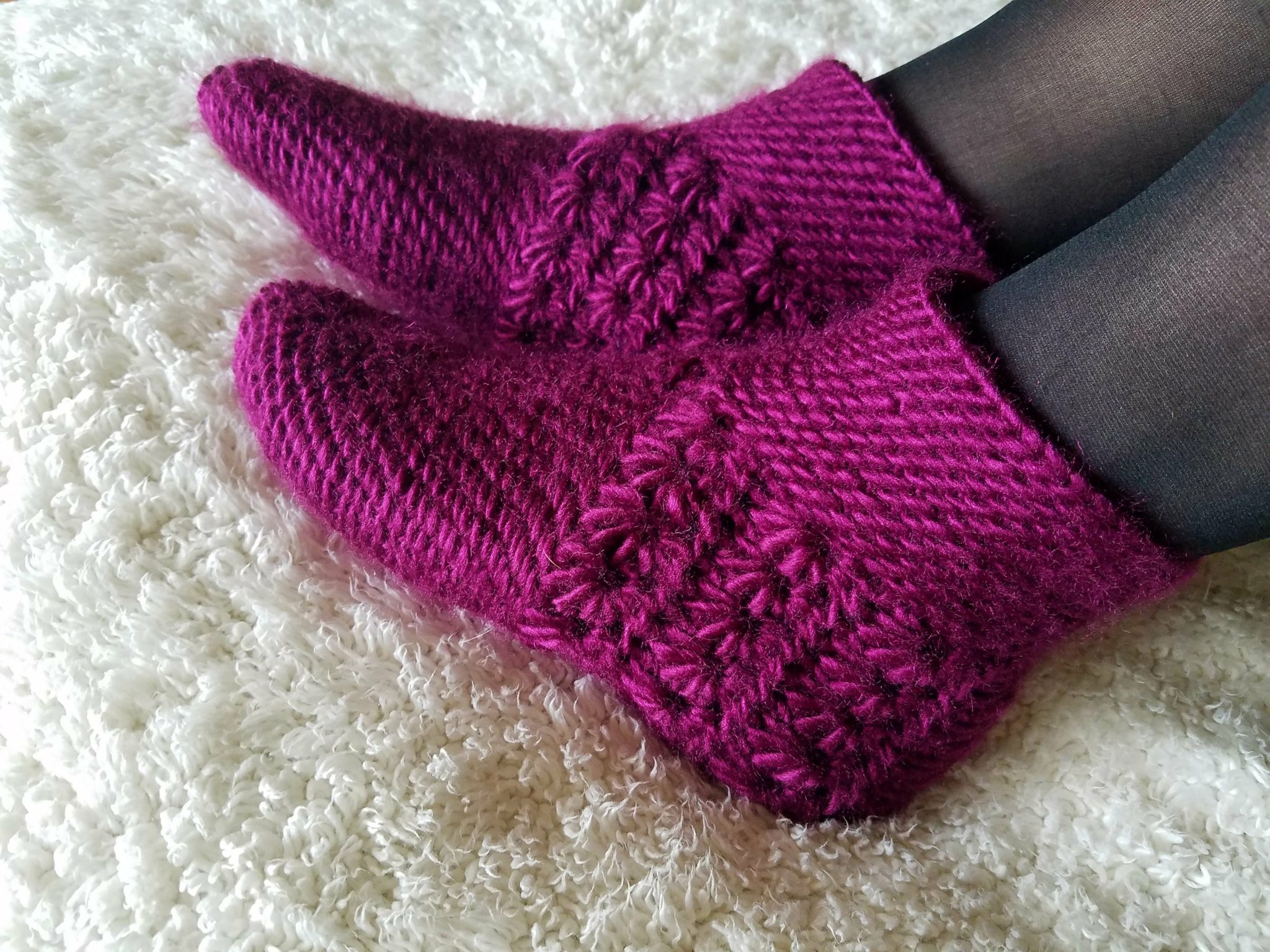 Patons Classic Roven is 100% pure new wool which makes the socks special because I remember from my childhood, I was always told how the best way to keep warm in frosty Estonian climate was to wear your wool socks. Patons has some precious colors in the collection, I made these in Frosted Plum (fitting for frosty weather) and shipped to my Mom for her birthday gift. She loves them!