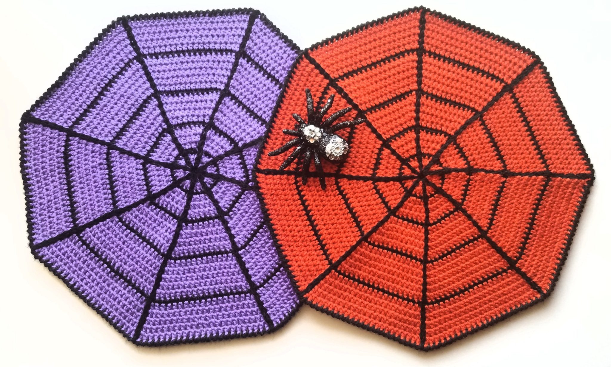 I have a perfect Halloween decoration idea โ why donโt we continue the spiderweb theme and crochet a spiderweb tablemat. If youโre brave enough, you can place a few big spiders on mats like I did.